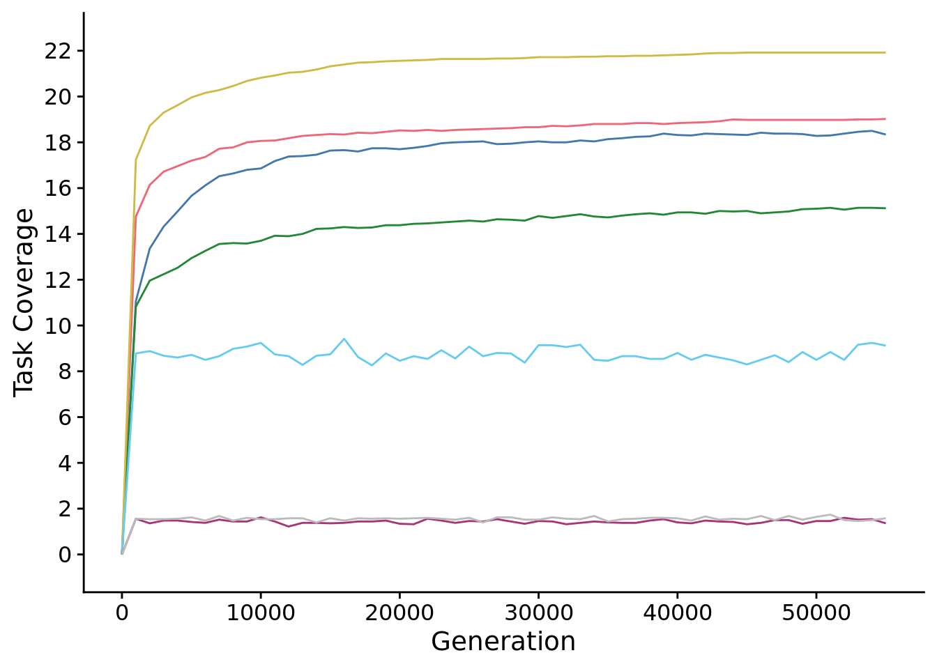 Task coverage across entire population after 55,000 generations of evolution.