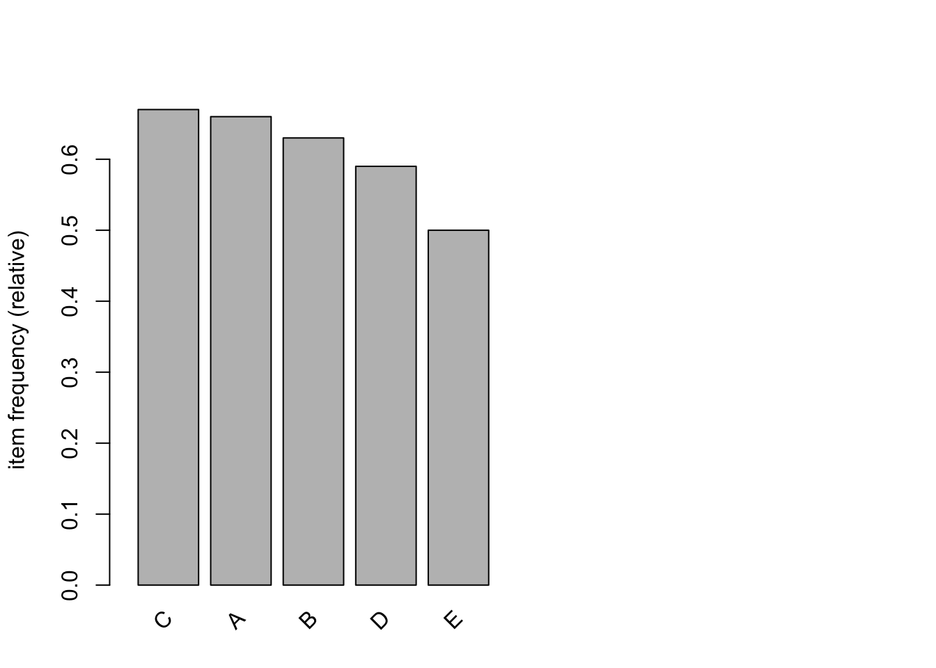 ## apriori(data = transactions, parameter = list(supp = 0.3, minlen = 1, target = "frequent itemsets"))