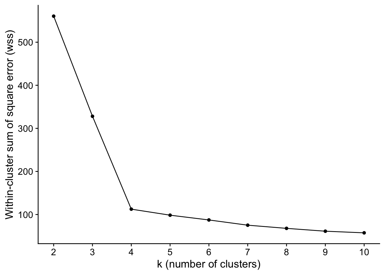 function in R. - use within-cluster sum of square error to help us choose a good number of clusters for the k-means algorithms